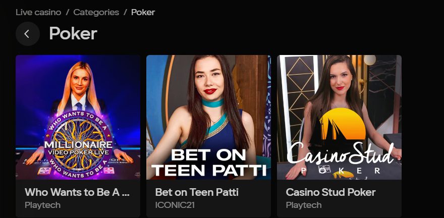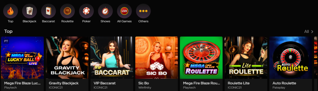 - Настільні ігри — 200+ варіацій рулетки, блекджеку, баккари